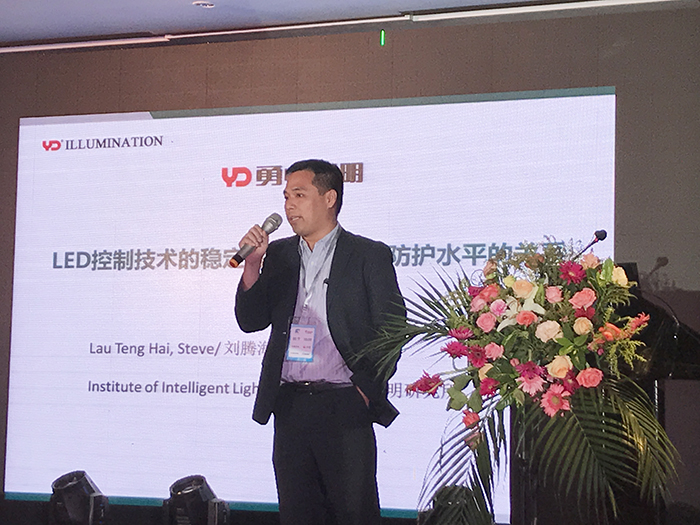 會上,勇電智能照明研究所劉騰海副所長發(fā)表了《LED控制技術的穩(wěn)定性與整個系統(tǒng)防護水平的關系》的主題演講。劉副所長指出,城市照明在旅游經(jīng)濟發(fā)展中發(fā)揮著不可或缺的助推作用,勇電體感互動控制系統(tǒng)豐富了城市照明環(huán)境的表現(xiàn)力,并結(jié)合案例視頻詳細介紹了勇電體感互動控制系統(tǒng)是如何應用在不同項目上的。勇電體感互動控制系統(tǒng)搭載的勇電二次封裝LED照明燈具防護等級高達IP68,阻燃等級V-0級,抗UV等級4-5級,可在戶外不同惡劣環(huán)境中長期使用,且勇電LED照明燈具以直流供電為主,不會產(chǎn)生電化學腐蝕。