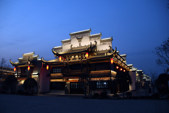 鳩茲古鎮(zhèn)建筑采用勇電LED大功率洗墻燈對(duì)建筑屋脊、瓦面、馬頭墻、垛口、木雕、磚雕、石雕、門樓、門頭等部位進(jìn)行還原和強(qiáng)化照明,使得景觀與LED燈光效果融合為一,形成了獨(dú)特的風(fēng)景與水彩畫面,詮釋了古鎮(zhèn)原汁原味的徽派特色。