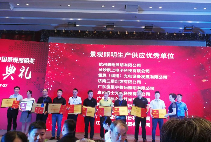 27日晚,大會(huì)舉行了2017年度“中國(guó)景觀照明獎(jiǎng)”頒獎(jiǎng)典禮,勇電照明分別榮獲景觀照明產(chǎn)品一等獎(jiǎng)、景觀照明產(chǎn)品二等獎(jiǎng)、景觀照明生產(chǎn)供應(yīng)優(yōu)秀單位三大獎(jiǎng)項(xiàng),這既是對(duì)勇電的認(rèn)可和鼓勵(lì),也是對(duì)勇電今后不斷開(kāi)拓進(jìn)取的激勵(lì)。
