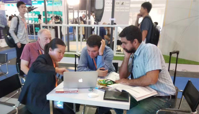 國內(nèi)外參觀團齊聚勇電展位,了解產(chǎn)品資訊,大家對“二次封裝”和“體感互動屏”特別感興趣。勇電員工以實際項目為例,為大家仔細(xì)講解產(chǎn)品在實景中的應(yīng)用。聲情并茂又幽默風(fēng)趣的講解,讓各位觀展商聽得津津有味兒!