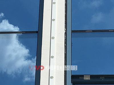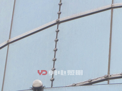 2、幕墻內(nèi)透安裝:有些幕墻玻璃顏色不深、透明性好,可以考慮將光源安裝在幕墻的內(nèi)側(cè),這種方式不會(huì)對(duì)幕墻造成任何外觀上的變化,白天隱形效果好;幕墻內(nèi)側(cè)安裝,可以用拉鋼絲繩的方式,二次封裝LED點(diǎn)光源設(shè)計(jì)有鋼絲卡扣,拉好鋼絲直接定好位置扣上去即可,方便快捷,不影響采光。