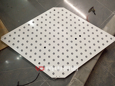 5、沖孔板內(nèi)透安裝:采用整板沖孔這種方式來(lái)安裝led點(diǎn)光源的時(shí)候,通常都是在鋁板或者不銹鋼板上根據(jù)計(jì)算好的位置來(lái)進(jìn)行沖孔,然后再把led點(diǎn)光源從板材的背面穿過(guò)來(lái),將其接好線就算安裝完成,這種整板沖孔的安裝方式也是目前比較常用的。