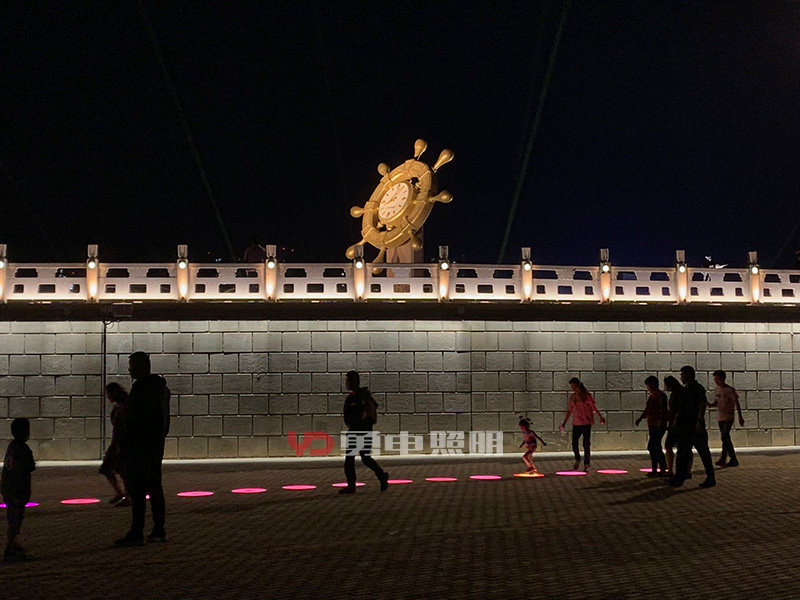 除此之外,在太陽島東西兩側(cè)廣場還安裝了特色互動燈具,包括互動鋼琴、互動投影游戲、互動圓形地磚燈等,游客可與燈光互動,感受燈光、享受科技與藝術(shù)融合帶來的視覺享受和體驗(yàn)。
