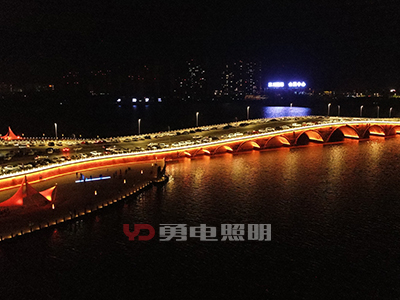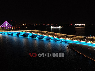 天地橋橋體部分跨度極長,橫跨海面,是整個照明工程的重要組成部分。