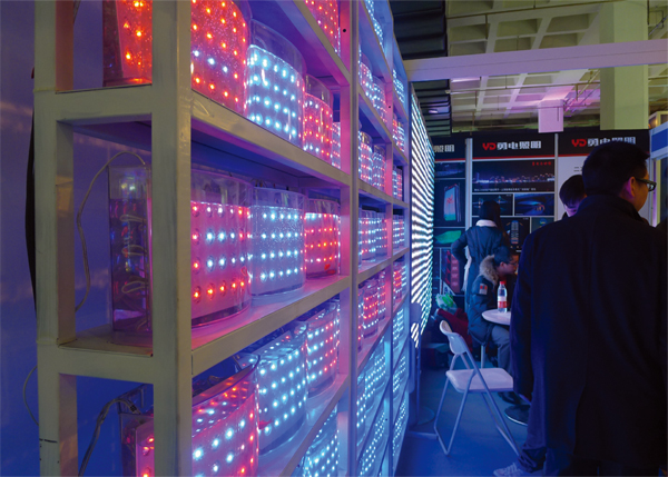 由72個(gè)魚缸和2304顆防護(hù)等級(jí)達(dá)到IP68的Φ20二次封裝LED點(diǎn)光源,每個(gè)魚缸中有許多小魚來(lái)回游動(dòng)組合成一面大型LED“魚缸顯示屏”,在2012中國(guó)(北京)國(guó)際照明展暨LED照明技術(shù)應(yīng)用展覽會(huì)亮相,引起了與會(huì)都爭(zhēng)相參觀。如此富有新意的展臺(tái)布置及高品質(zhì)的防水LED燈吸引了眾多參觀者的目光,新聞媒體也對(duì)我司進(jìn)行了現(xiàn)場(chǎng)采訪。