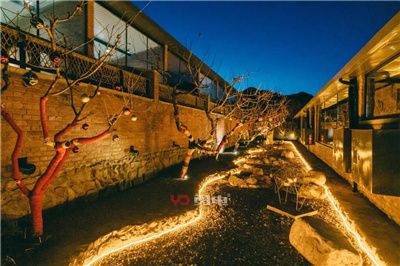 勇電燈光產(chǎn)品服務(wù)于北京鄉(xiāng)村生態(tài)藝術(shù)展“水晶墻”、“靈動”兩處燈光藝術(shù)設(shè)置,燈光設(shè)計充分融合當(dāng)?shù)靥厣?,用光色交互編織藝術(shù)語言,勾勒出瓦廠酒店空間的視覺重點,與明朗的色調(diào)契合,在照明功能及美學(xué)尺度上達(dá)成了絕美平衡。