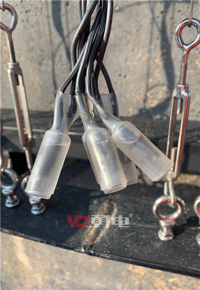 建德“城市之根”雕塑造型是直徑約7.5米,高度約25米的圓柱體,雕塑位于河道正中央,所有電源連接線接頭均用防水端子進行了灌膠處理,并且搭建了專業(yè)的水下電纜供電。