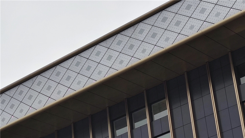 我們在幕墻裝飾板上計算好位置進行沖孔,采用內(nèi)透的方式進行安裝,使得燈具能夠完美隱匿又便于檢修。同時我們的技術人員對燈具的安裝高度、密度等都進行了精準測算,無論是近觀還是遠望均無眩光干擾。