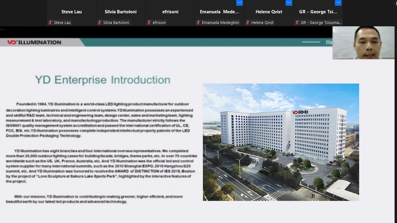 勇電國際貿(mào)易總監(jiān)徐海晟和智能照明研究院副院長劉騰海Steve Lau受邀出席會議,并以線上云分享的方式發(fā)表了技術(shù)演講,與來自意大利、俄羅斯、法國、英國、荷蘭等國家眾多照明大師共探智慧城市照明及戶外建筑照明等重點論題。