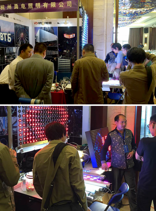 與此同時,會議之外還設(shè)定了會員單位展臺,勇電照明此次展示的有線條燈、大功率洗墻燈等多款戶外照明產(chǎn)品,參展客戶對公司的產(chǎn)品產(chǎn)生了濃厚的興趣,針對大功率系列燈具咨詢了很多技術(shù)上的問題。