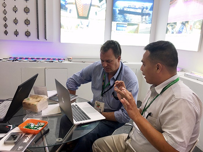 外貿(mào)團(tuán)隊(duì)正在與客戶進(jìn)行深入溝通,了解當(dāng)?shù)乜蛻魧?duì)于LED照明的需求。