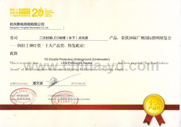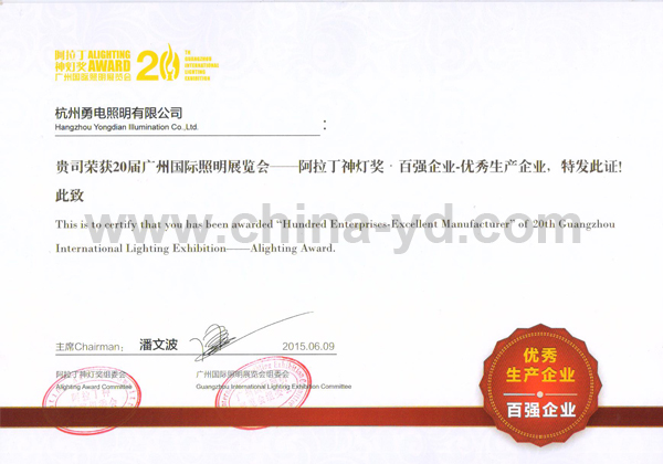 2015年阿拉丁神燈獎(jiǎng)于6月9日20:00隆重舉行,在本屆阿拉丁神燈獎(jiǎng)評選中,勇電照明憑借雄厚的研發(fā)創(chuàng)新實(shí)力榮獲“十大產(chǎn)品獎(jiǎng)”及“百強(qiáng)企業(yè)”獎(jiǎng)。